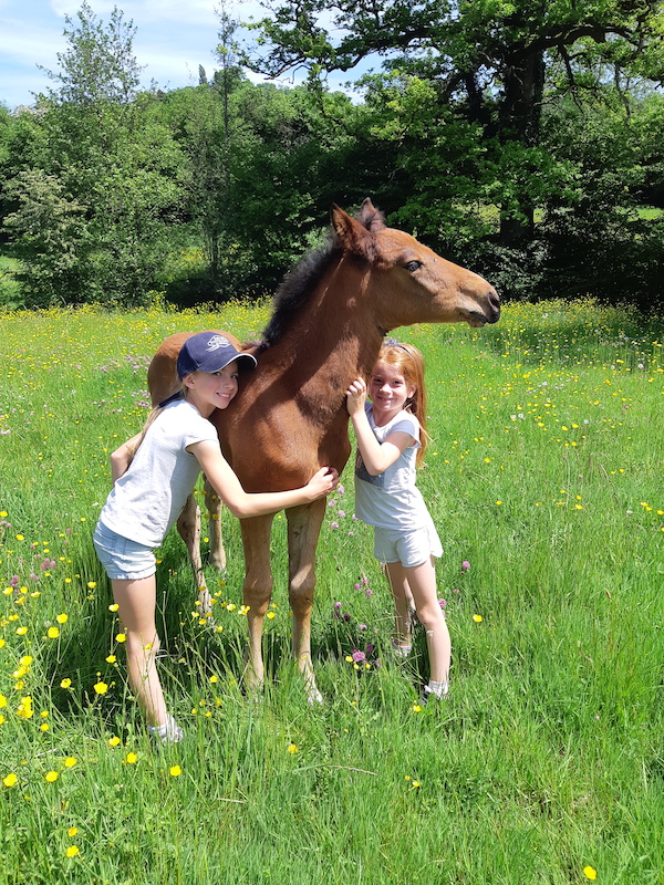 - Pré: pension pré en troupeau, sur nos parcelles gérées en pâturage tournant, comprenant le complément en foin et aliment l’hiver. Tous les prés possèdent un abri naturel ou en dur, avec accès à un point d’eau (source, rivière…). Nous organisons nos parcelles de manière à avoir une rotation qui nous permet de faucher certaines parcelles pour la production de foin bio.